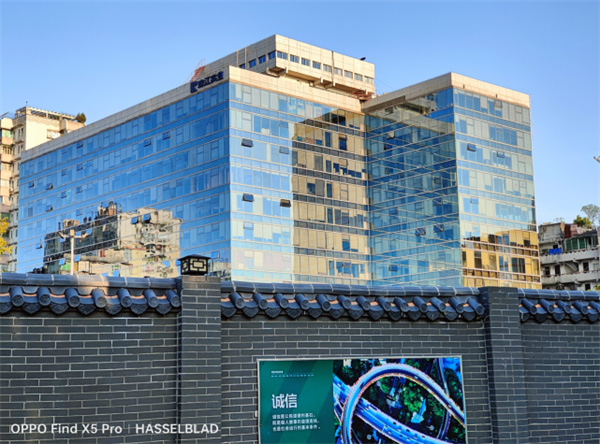 下面这组样张中,两者也都展现出了不俗的解析力,诸如远处高楼建筑的墙壁纹理,近处的招牌字样,都能完美呈现。不过在观感上,OPPO Find X5 Pro显然更讨人眼球,其对于天空颜色的还原更为饱满鲜明,整体亮度也更高一些;而iPhone 13 Pro画面比较朴实自然。