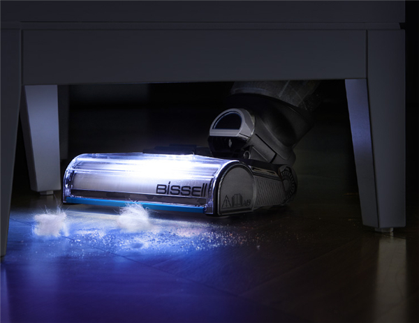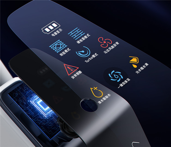 底部增加了LED灯照明,光照条件不佳的工况下,辅助主人更好地清洁地面不易发现的污渍以及狭窄阴暗的清洁死角。