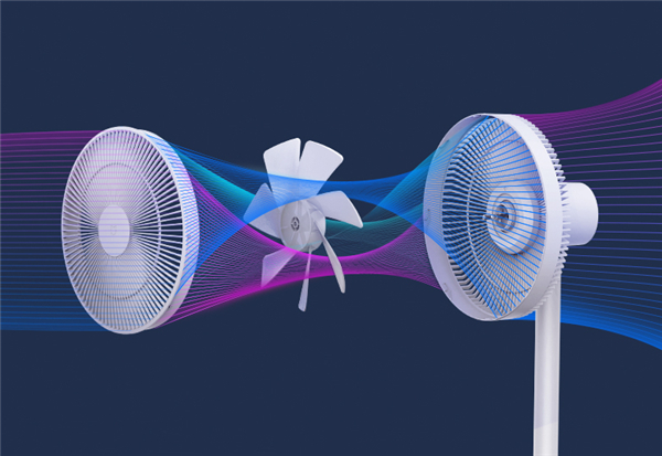 小米米家直流变频落地扇E采用了半透明ABS材质的7片羽翼型扇叶,通过长期采集计算的自然风算法,结合高度可调节性的直流变频电机,还原了自然风无规律的变化,出风量最高可达23m³/min。