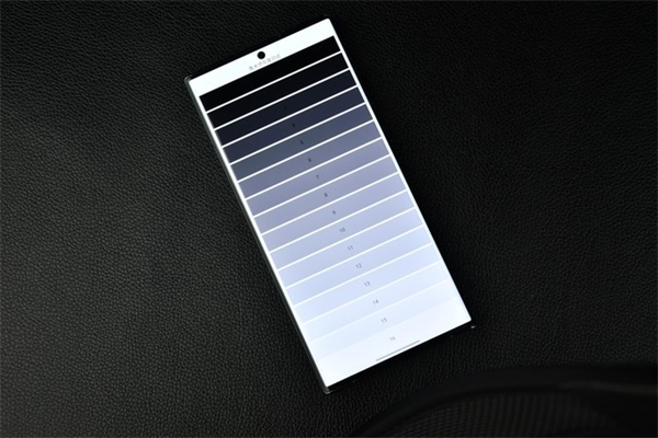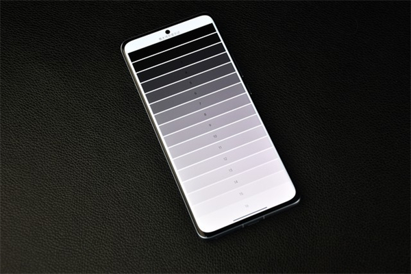 首先,我们先对两块屏幕进行灰阶测试,这项测试主要是对比屏幕最暗的黑到最亮的白之间的亮度层级关系。明暗对比和黑白颜色过渡方面的表现,图像越清晰,过渡越自然则越好。在测试前,两款手机均开启WQHD+分辨率,系统推荐的色彩风格,统一屏幕显示亮度。