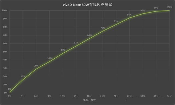 快充方面,vivo X Note支持80W有线闪充,实测充电体验非常优秀,耗时33分钟20秒系统显示电量就达到了100%,而后在34分钟时完全充满,充电器断电。这种UI显示100%与实际完全充满几乎统一的表现,是vivo快充技术的一贯传统,也是实际体验最好的快充方式。