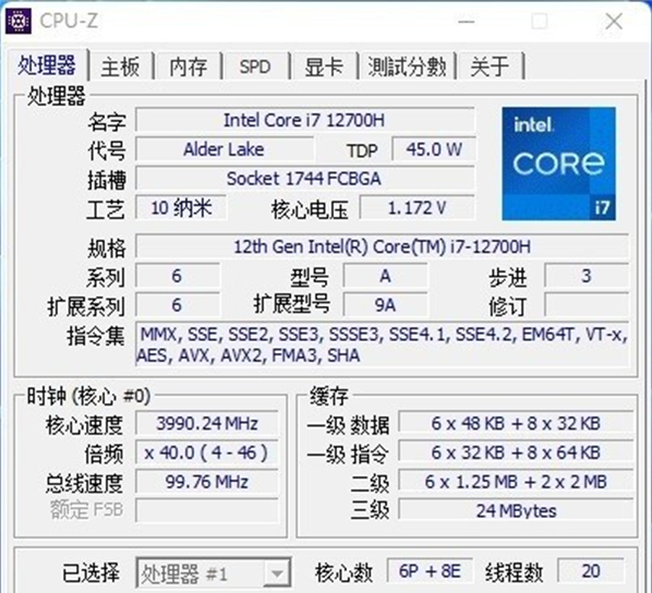️1、14核心20线程:十二代酷睿i7-12700H