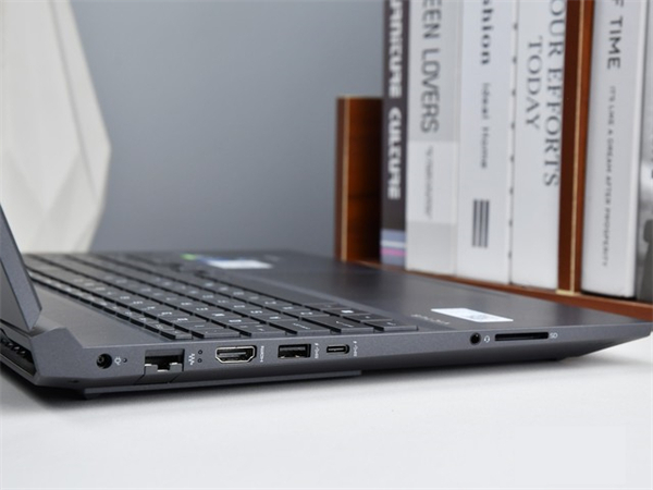 最后来看看接口区域,机身左侧有依次是电源接口、RJ45接口、HDMI接口、一个USB-A 3.0、Type-C、3.5mm音频口和SD读卡槽;机身右侧为两个USB-A 3.0.接口的数量和丰富度都很充足,实用性佳,能够满足到大部分用户的日常需要。