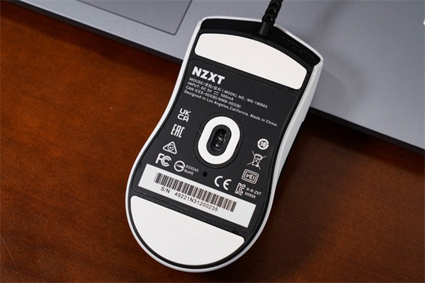 在鼠标底部末端,和键盘一样,刻有白色印制的“NZXT”品牌logo。