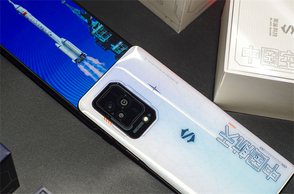 黑鲨5航天版采用了白色后盖,依然是玻璃材质,采用了几何线条搭配撞色设计,尤其是背面印的“中国航天”四个字太戳直男心,直接硬核拉满,黑鲨可太懂了。