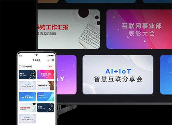 为方便企业进行宣传与展示,100"超大屏内预置了丰富的创意模版,无需复杂的配置与传输,即可轻松满足展示需求。