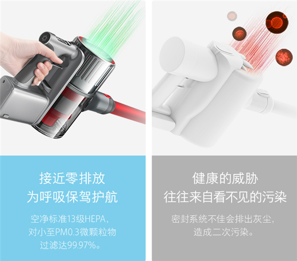 石头无线吸尘器H6可以过滤PM0.3颗粒物,所过之处真的可以达到空无一物,由尘桶气旋、不锈钢初滤、多锥气旋、过滤棉滤网、HEPA滤网组成的5层过滤系统,将可见或不可见的灰尘颗粒统统吸走,过滤能效达到了99.97%,可以说根治了前面吸尘,后面排灰的吸尘器老问题。