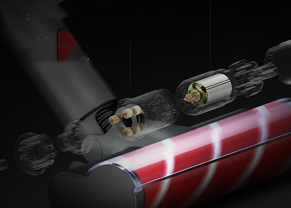 洁效果除了和吸力相关之外,和刷头的表现也密切相关。石头无线吸尘器H6在刷头上采用了行星齿轮减速器,这种设计常见于汽车变速箱中,因为行星齿轮结构更为紧凑,石头将电机和减速器都放进了滚轮内部,滚刷的直径也达到了50mm以上,可以适应更多的地毯表面,不易缠绕。