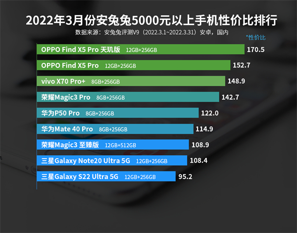 3月安卓5000元以上价位性价比手机排行榜:天玑9000登顶