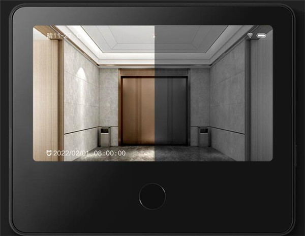 5英寸IPS屏,采用IPS液晶屏,钢化玻璃全贴合工艺,可视角度更大,图像更清晰,有人按门门铃,屏幕自动显示门门外画面,方便老人小孩看门外。 门内屏幕支持显示天气、 限号信息。