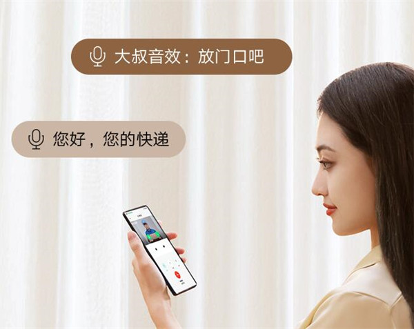 变声通话,通过米家APP发起视频通话,独自在家可以选择变声功能和门外访客对讲,同时支持“快递请放在门口”等快捷回复,也可以自定义语音回复。
