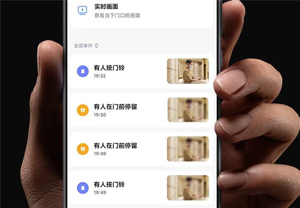 Al人体侦测录像,配备定制PIR人体感应传感器,门外来人立即触发录像,并发送告警通知,搭配Al人体侦测算法,有效减少非人体触发的误报警和有人在门前的漏拍现象。