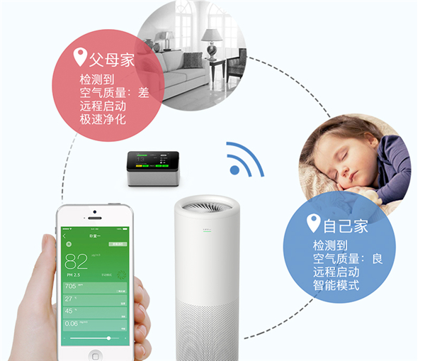 而且还支持手机APP联动,下载手机APP并按照说明书进行链接后,可以在任意有网络的地方随时远程查看室内空气质量,并可在手机上进行操作。特别适合下班前快到家了,提前打开空气净化器,这样一进家门就能呼吸到洁净的空气。还可以在设置中开启或者关闭监视器的夜灯效果,待机状态下还可以作为时钟使用。省了一个床头灯,还可以随时看时间,夜灯灯光柔和不刺眼,点一下屏幕即可推出待机状态查看空气参数。