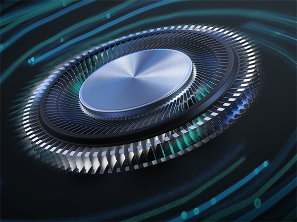 再来看风扇,掠夺者战斧300与其它品牌相同的是风扇叶片都很密集,而不同的是Acer将所有的技能点都加在了通风量上,尤其是左侧给CPU 的宏碁独家专利“第五代3D刀锋速冷金属风扇,叶片直接采用了可以做的更薄的金属材质,叶片数量也达到了89片,同时叶片上还有增大风量的锯齿设计,从官方数据来看相比普通风扇通风量能提升55%,通过热成像可以明显看出热风从出风口喷射而出。同时,2022版战斧300还搭载了液态金属为散热加持。