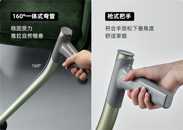 大宇抑菌蒸汽拖把的把手采用的是铝合金材质,上手非常轻便,外观采用喷砂工艺,看起来质感十足。160°一体弯管,非常符合人体工学设计,在清洁打扫时可以轻松推拉,主机净重2.4kg,非常轻盈,不用使用很大的力气,一手就可掌握。