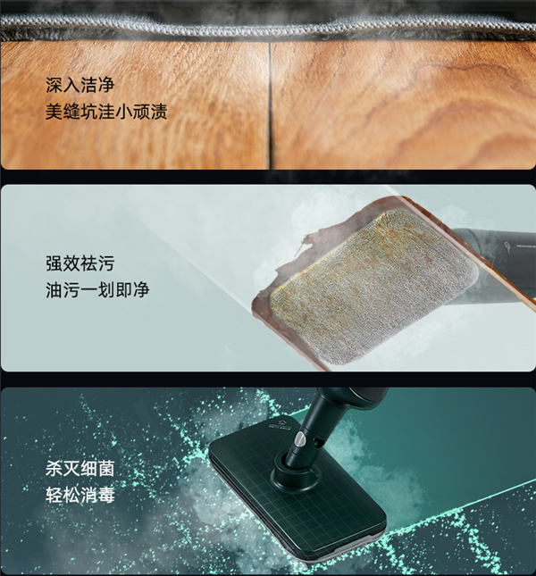 大宇抑菌蒸汽拖把通过高温蒸汽和气味芬芳的清洁液相结合,全面捕杀地板上的细菌、病菌、螨虫等这些微小的“脏物”,同时对顽固性污渍起到快速清洁的效果,让居家环境更加清洁健康。