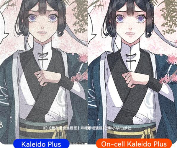 底色白度提升10%,黑白对比度提升30%,Eink On-cell Kaleido Plus比上一代屏幕更轻微的底纹效果,黑白线条更清晰,彩色效果更细腻。