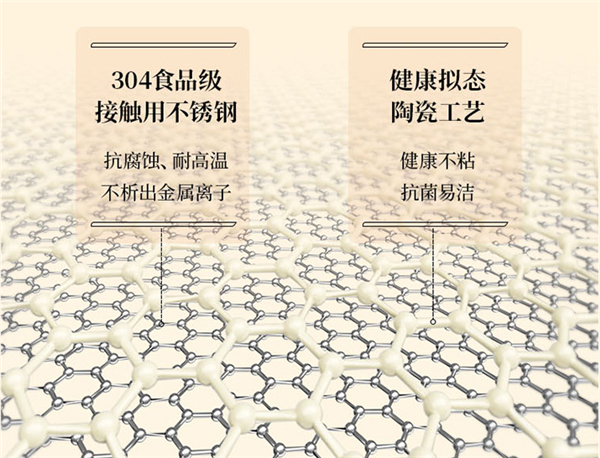 大宇K9蒸烤炸一体机箱体的内壁均为“拟态陶瓷工艺”,由纳米陶瓷釉涂层的面漆加上304食品级不锈钢材质组成,其实就是我们比较熟悉的“搪瓷”或者“珐琅”工艺,只不过陶瓷层更薄,附着性更强,磕碰不易脱落,耐高温耐腐蚀,可以较长时间维持颜值,有较长的寿命预期。