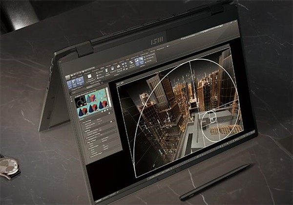Summit E16 Flip Evo的16:10显示比例是以1.618黄金比例精心订制,16:10的设计为用户带来更舒适的视觉体验,利于长期使用。16:10的显示比例屏搭配MSI Pen,更高水平的组合适用各种工作场景,为您带来更流畅的办公体验。