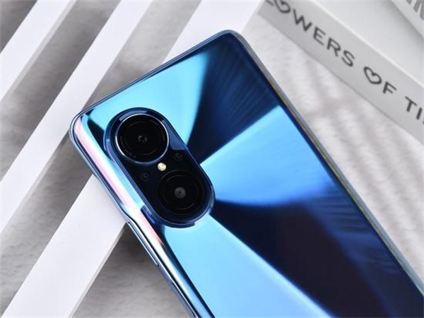 翻看背部,华为 nova9 SE相机模组沿袭了nova系列经典的星耀环设计,对称式的相机模组营造了一种秩序美感。手机背壳有冰晶蓝、贝母白、幻夜黑三种配色,此次笔者拿到的正是冰晶蓝版本。