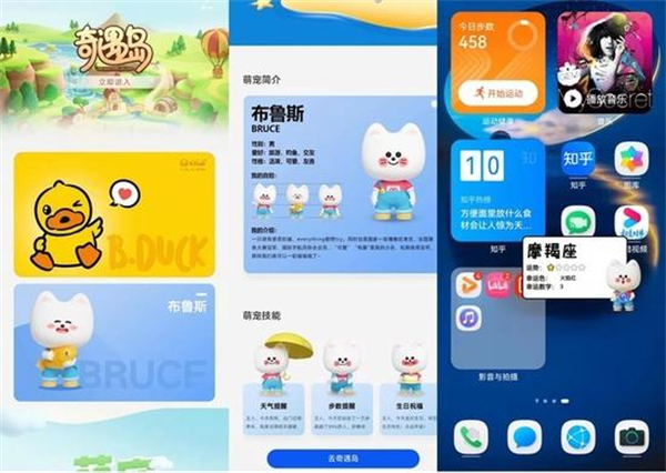 除了满足年轻用户对于桌面风格的个性化需求外,得益于HarmonyOS 2.0的加持,华为 nova9 SE还带了桌面宠物功能,我们可以在主题应用中开启该功能,目前有布鲁斯和B.DUCK两种宠物可供选择。