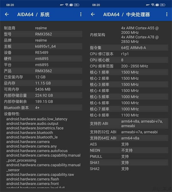 首先在硬件方案上,真我GT Neo3使用的是联发科今年的次旗舰天玑8100.对于这款5G SoC,我们三易生活此前已经做过非常多的分析了。简单来说,它不仅具备5nm台积电的优势制程,而且使用了更偏向实用(而非跑分)的“四大四小”CPU设计,以及目前来说兼容性更佳的Cortex-A78+ Cortex-A55架构,同时使用了很高的主频来保证其性能发挥。