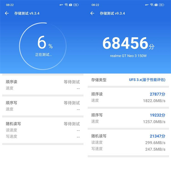 除了CPU和GPU外,我们也测试了真我GT的闪存性能。正如大家所见,它很显然配备了UFS3.1闪存,在软件安装、游戏加载的速度等方面,达到了目前性能向机型该有的水准。