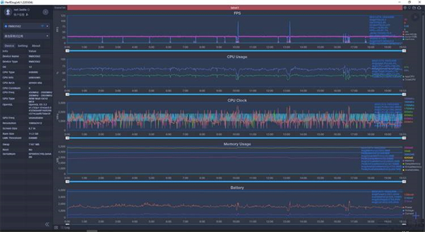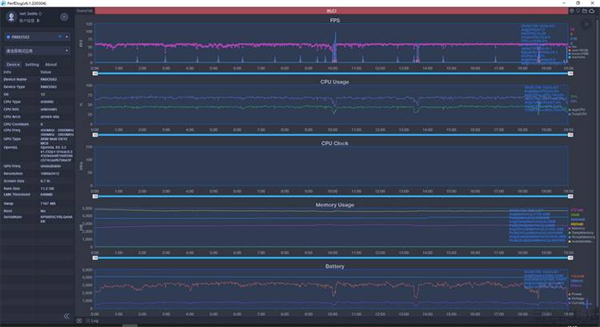 最后一步,我们将真我GT Neo3的电源维持“GT模式”,但把游戏插帧功能改为“优化功耗”,此时GPU的实际渲染帧率进一步下降到30帧,并通过独立显示芯片插帧到60帧进行输出。可以看到,游戏依旧维持着极为稳定的帧率,同时功耗下降到3.2W上下,几乎与“均衡模式”已经差不多了。但别忘了,此时手机的性能调度其实依然是比“均衡模式”要积极得多的,而且玩家实际看到的帧率也同样是60帧。