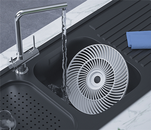 通过机头底部的一个螺丝固定前网罩,拆除螺丝后可以通过转动来取下前网罩进行清洗,一拧一转即可轻松搞定。