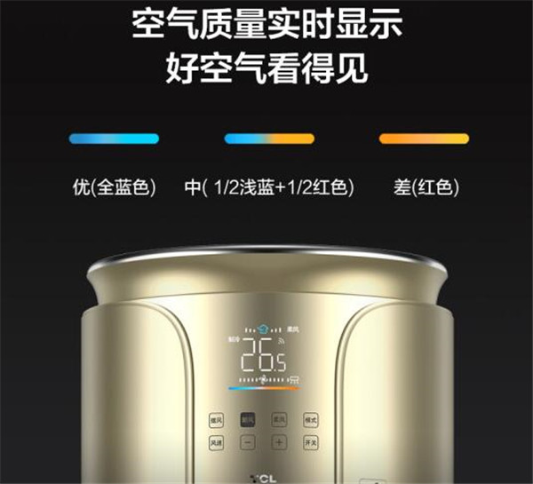 可视化升降式小蓝翼设计,独特翼型结构即使不开窗也能循环室内外空气,空气时刻清新。可视化升降,操控得心应手,智能感知,实时守护健康,金色镶边,彰显质感品味。