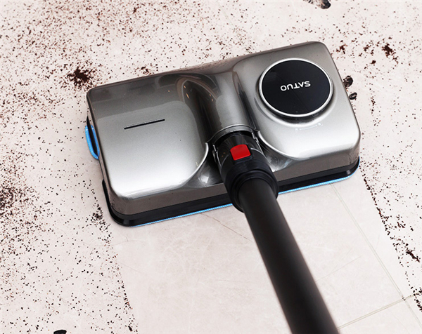 从拖地头底部位置基本可以了解吸拖一体的整体构造,先通过仿生设计的3D吸尘口,使用强大的集中风力吸尘,然后通过吸尘口附近的拖布来擦式,这和我们日常先吸尘后拖地的道理一样,这样的设计可以直接省略单独吸尘的步骤,吸拖一次搞定,拖布采用的是魔术贴可拆卸设计,所以使用完后直接取下清洗即可。