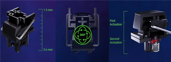 自定义触发键程:雷蛇模拟光轴的触发范围在1.5mm~3.6mm间调节。