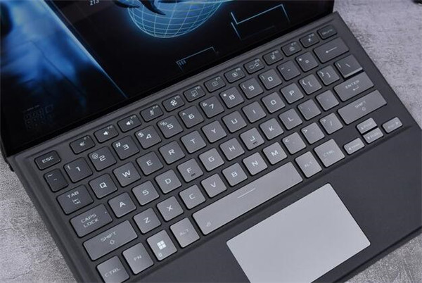 ROG幻X采用了Cover式的磁吸式可插拔键盘,而且这块键盘支持华硕AURA RGB背光,通过内置控制软件可以自定义背光效果。键盘采用全尺寸大键帽,键程约1.7mm,属于偏长键程,加上按键弹性反馈处理的非常干脆,因此整体使用手感极佳。