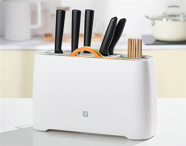中国人对烹饪的理解可以从多种多样的烹饪工具中得到体会与领悟。八大菜系的制作无论需要什么样的制作工具,那都离不开砧板和刀,日常饮食生活中也离不开碗筷,所以寻常人家都少不了刀架和碗筷架。虽然日日用日日洗,可是日日潮湿的环境却给细菌留下了温床,为此很多家庭入手了消毒柜、洗碗机等,为的就是保证入口健康。可是厨房空间小,可怎么办呢?不用担心,有这款小米有品FIVE智能刀筷砧板杀菌架,不仅能杀菌消毒,而且可以收纳放置菜板、勺筷、刀具,非常适合小户型家庭。