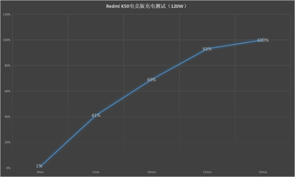 充电方面,K50电竞版内置4700mAh电池,在开启快充充电模式下(同样在系统设置-省电与电池中打开),实测从1%充至100%共用时19分钟,5分钟充至41%,10分钟69%,15分钟93%,整个速度还是相当快的,能够达到目前线充的第一梯队,而且即使如此高的功率,整个充电过程K50电竞版手机的温度控制的很好,在边充边玩手机时不会出现明显烫手的情况。