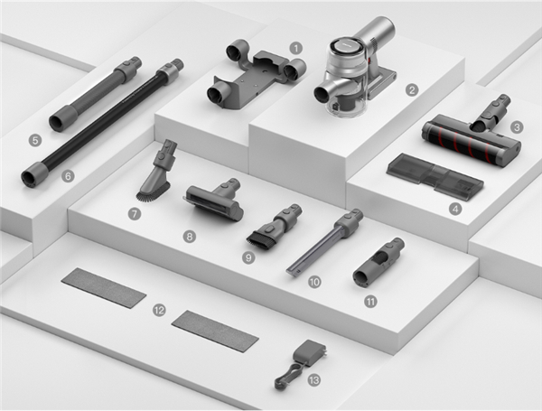 总结,追觅V12无线吸尘器,在延续前代科技感简约造型的基础上,15万转马达突破动力极限,成功跻身业界吸力第一梯队,而且尘气分离效果出众,12锥旋风离尘系统有效拦截99.6%的微尘,让后置滤芯接近零负担,另外从滤芯、滚刷到落地支架,均有原厂与副厂配件可供选购,配件通用性与经济性较理想。