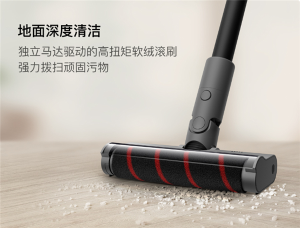 电动软绒滚刷吸头是日常使用的主力刷头,不仅可以用来清理质地较硬的地板、瓷砖,也可以清理地毯等布艺面料。刷头内置独立直驱马达,能够在工作时自行转动将灰尘“扫入”吸尘口,提高清洁效率。头左侧有竖条状的散热口,防止长时间工作后电机过热,引发故障。