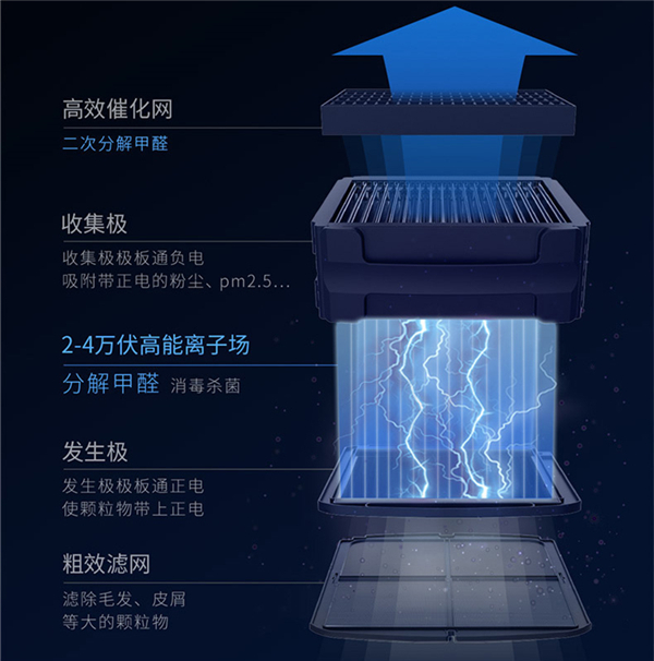 看到此处,相信熟悉净化器产品的朋友可能会想到贝昂空气净化器X7S没有HEPA滤网吗?是的,X7S采用的TPA双极猎尘技术代替HEPA滤网。甲醛等有害物质首先被TPA双极猎尘技术的电场力分解,然后被活性炭吸附,最后被催化剂分解。双重分解带来的优势为可持续化的净化,使得X7S的净化速度能持续压制住甲醛的挥发速度,让室内空气保持干净。