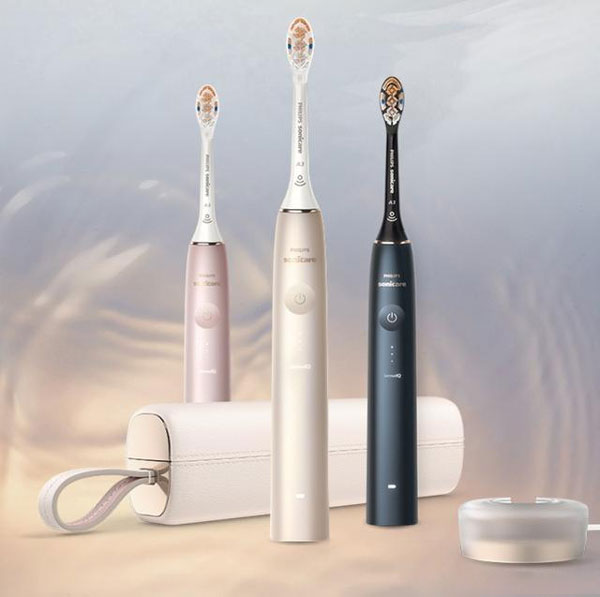飞利浦HX9996是一款精准智感、定制专属的洁牙智能电动牙刷,售价近2K,提供香槟金、樱花粉、午夜蓝三款配色,很显然也是定位高端市场的。