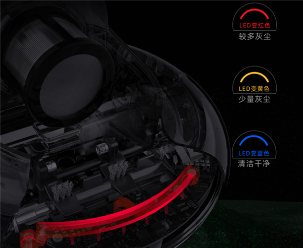 最后用红、黄、蓝三种LED灯来显示清洁状态,避免做无用功也避免出现清理死角,这一招不知道比“干没干净全靠猜”的其他除螨仪强到哪里去了。