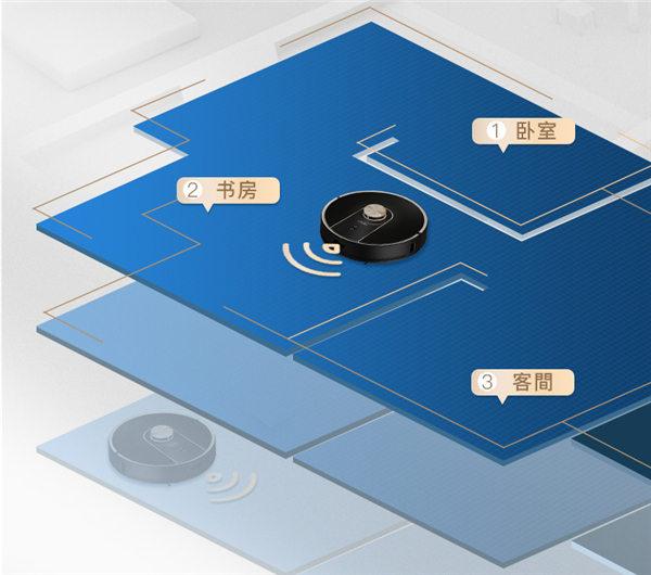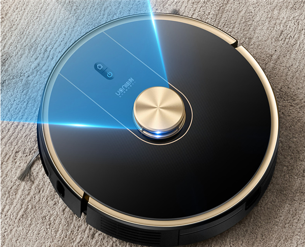 顶部凸出的小小圆形是激光组件,里面有3个激光测距传感器,另外还设计一个激光头盖板压力传感器。当第一次我们进行清扫时,激光导航组件会自动扫描,最后生成全屋地图。当然,全新第四代激光导航技术不仅仅是建图那么简单,其采用由利定制的ULD24.0激光技术,能够详细准确绘制全屋详细地图,从而方便后期的房间编辑、划区清扫、禁区设置等等功能操作。