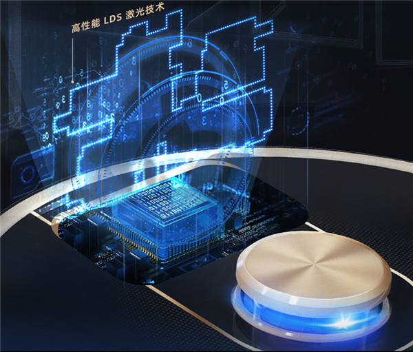 与大多数智能扫地机一样,由利扫地机器人V980 MAX的造型也是圆形的,当然,在细节上是有区别的,首先在配色方面,与大部分产品一码白色或者黑色不一样,这款产品采用的是黑金配色,面板是镜面黑色,很通透;面板边缘有凹凸设计,且色彩与中间的激光模组盖板都是金色的;另外,这个面板是固定的,不可以打开,跟我之前用的扫地机不太一样,集尘盒并不是从这里安装,而是从侧面安装;