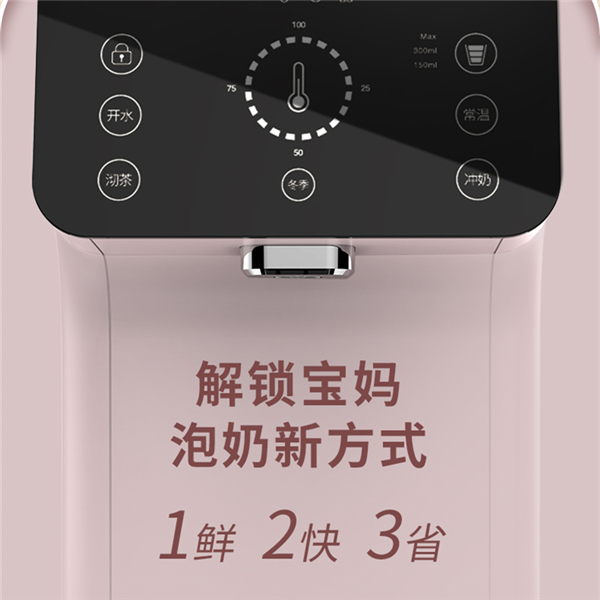另外还可以通过触控面板调节每次的出水量:150mL、300mL和无上限,建议选择固定出水量,就算忘记自己在接水也不用担心"水漫金山"。儿童锁这个需要在每次接开水和沏茶时都要长按3秒,这个对没有小孩的家庭就会显得麻烦而不是安全感。