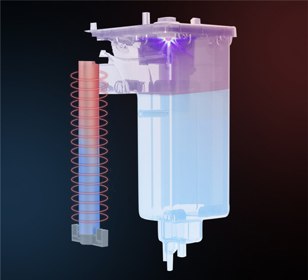 在B20运行的时候始终会自动打开UV杀菌功能,这也能够杀死因水长期放置滋生的细菌,让饮用水更加安全。另外笔者亲测出开水的速度真的很快,基本就是一瞬间,这主要因为B20主机内部有一个容量大约有1L的储水桶,再搭配BluePro DAS动态净热双效系统,最终实现3秒速热,有了它以后喝热水再也不用等了。