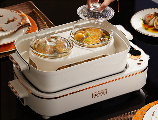 总结,多功能锅看过不少,但是第一次看到把“蒸”用好的一款锅,利用高温蒸汽发生器系统,360°蒸汽喷头直喷5秒出蒸汽,120℃全方位均匀加热,蒸汽鲜炖用时短;能蒸能煮,能煎能烤,涮、炒、炖、焖,多功能都不缺,甚至上蒸下煮无所不能,博拉利蒸汽料理锅与美味生活适配度满分,就让TA来承包你畅吃美食的快乐吧!