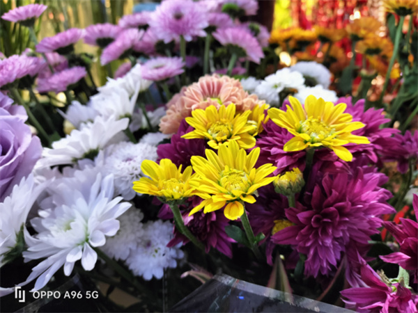 通过白天的实拍样张可以看出,OPPO A96在应对白天场景时游刃有余,评测时的天气并不算特别完美,但可以看出OPPO A96在整体的白平衡方面还原准确,细节处也能够得到很好的保留,获得好评。而在室内的花卉场景下,可以看到OPPO A96能够在复杂颜色场景下做到各个颜色的还原,花瓣细节清晰可见,并没有因为焕彩AI将颜色处理得过于艳丽而失真,绝对是拍照的一把好手。