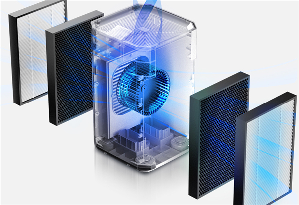 而且过滤能力达到H13级别,最低能够过滤0.01微米的颗粒物,双面滤网强效过滤,对于甲醛、粉尘等过敏原都有着很好的吸附效果,常见的PM2.5、甲醛、苯、二甲苯等等污染物根本不在话下。并且由于是双侧进风,两边的两个高品质滤网让进风量增大,过滤效率比其他产品高了很多。如果再打开负离子功能,还能增加有害气体的吸附效果,加速微粒沉降,使得空气清新,消除异味。