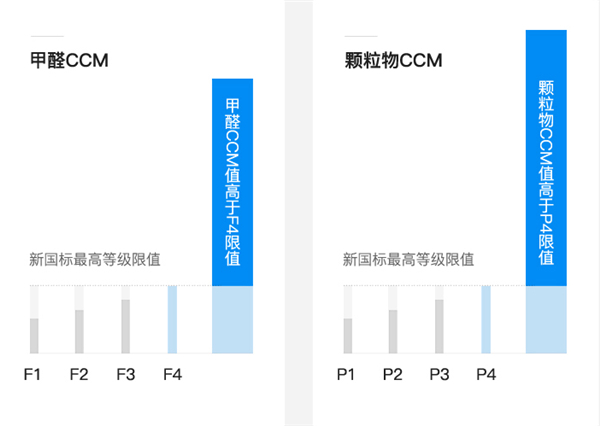 IAM空气净化器KJ850F颗粒物CADR值高达897m3/h,甲醛CADR值也高达446m3/h,双高的CADR值带来的净化效果毋庸置疑。滤网方面,IAM空气净化器KJ850F的滤网累计净化量CCM均处于国标最高(颗粒物CCM P4、甲醛CCM F4)水平。整体参数在净化器中属于第一梯队,远超同价位其他产品。