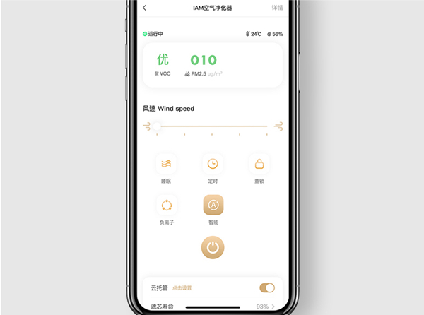 在控制面板的操作方面,除了可以选择自动功能之外、我们还可以根据不同的需求选择低、中、高三档以及睡眠等四个风量模式,并且还支持负离子功能开启,在夜晚熟睡时,8小时内的定时关机设置更为人性化。我们也可以使用手机app在远程控制净化器的所有功能。除了能随时遥控家里的净化器开关机以外,查看PM2.5数值,调节风速或者打开童锁等等,总体来说,IAM空气净化器KJ850F的操作方式简单直观,上到老人,下到孩子,都能够简单便捷的操作使用。