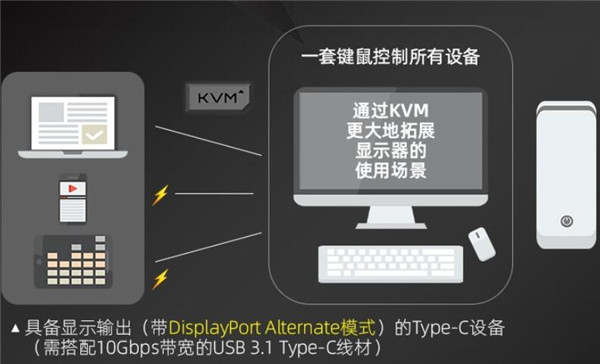 GIGABYTE独特的KVM功能,通过一对键鼠,自由地控制您的设备。我们支持多种跨平台操作系统!试想一下,在电竞显示器上玩手游,同时给手机充电,是多么奇妙的体验!